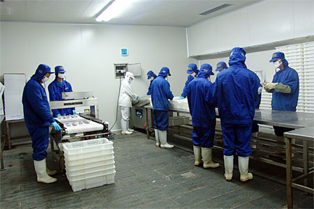 本公司是一家以水產(chǎn)品加工為主的出口型企業(yè),于2004年9月建成并正式投產(chǎn)。公司廠(chǎng)房完全按照歐洲聯(lián)盟的標(biāo)準(zhǔn)設(shè)計(jì)施工,目前占地14000平方米,建筑面積8000平方米,其中加工車(chē)間1600平方米。公司日速凍能力達(dá)100噸,儲(chǔ)藏庫(kù)容量為5000噸,主要加工蟹類(lèi)、貝類(lèi)、頭足類(lèi)及魚(yú)蝦類(lèi)水產(chǎn)品,產(chǎn)品銷(xiāo)往日本、東南亞及歐盟地區(qū)。
